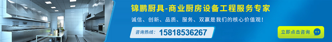 錦鵬廚具是一家專業(yè)從事星級酒樓、食堂、學校、餐廳、工廠、機關(guān)、醫(yī)院等商用中央廚房設備工程設計售后維修保養(yǎng)為一體的現(xiàn)代化企業(yè),廚具設備廠家。承接不銹鋼廚房廚具、酒店廚房設備工程、不銹鋼廚房設備工程、商用廚房工程設計及制冷制熱系統(tǒng)工程。業(yè)務范圍覆蓋廣州、深圳、東莞、佛山、惠州等地,公司依據(jù)客戶要求和現(xiàn)場實際情況精心設計,合理安排,創(chuàng)造節(jié)能環(huán)保優(yōu)質(zhì)產(chǎn)品和熱情服務。